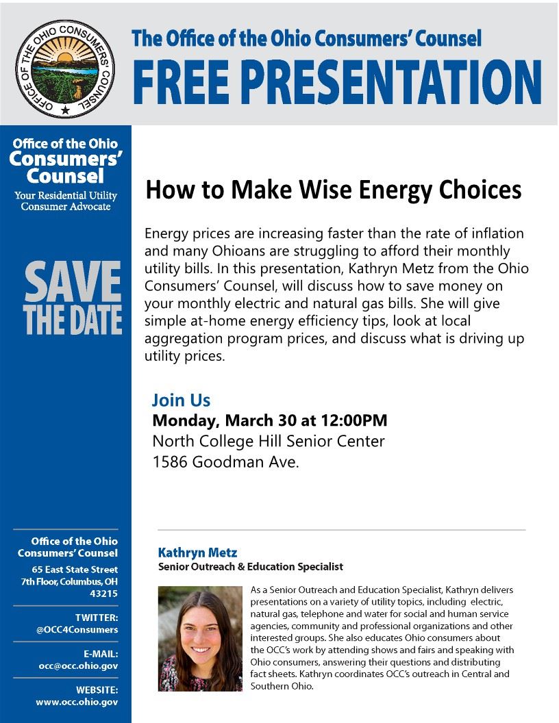 There will be a Free Presentation by The Office of the Ohio Consumers' Counsel on Monday, March 30, 2026,