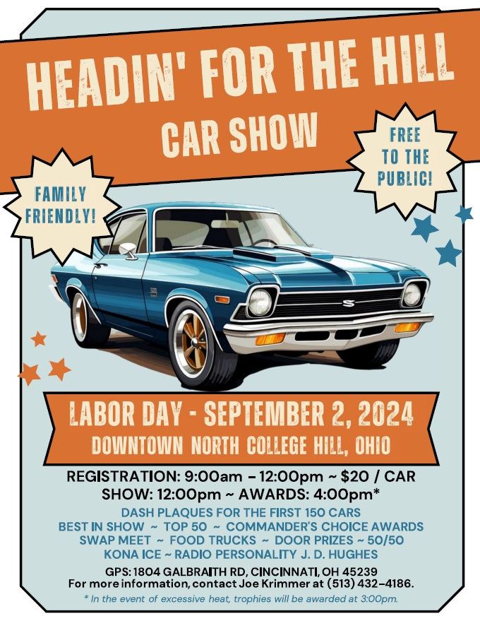 - Event Location: "Downtown" North College Hill - GPS: 1804 Galbraith Rd, 45239